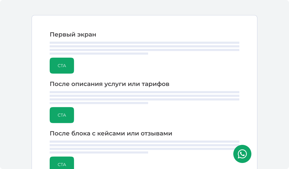 - После блока с кейсами или отзывами. Социальное доказательство сработало — нужно дать возможность сразу действовать.