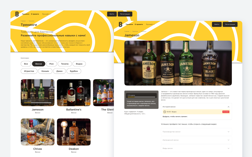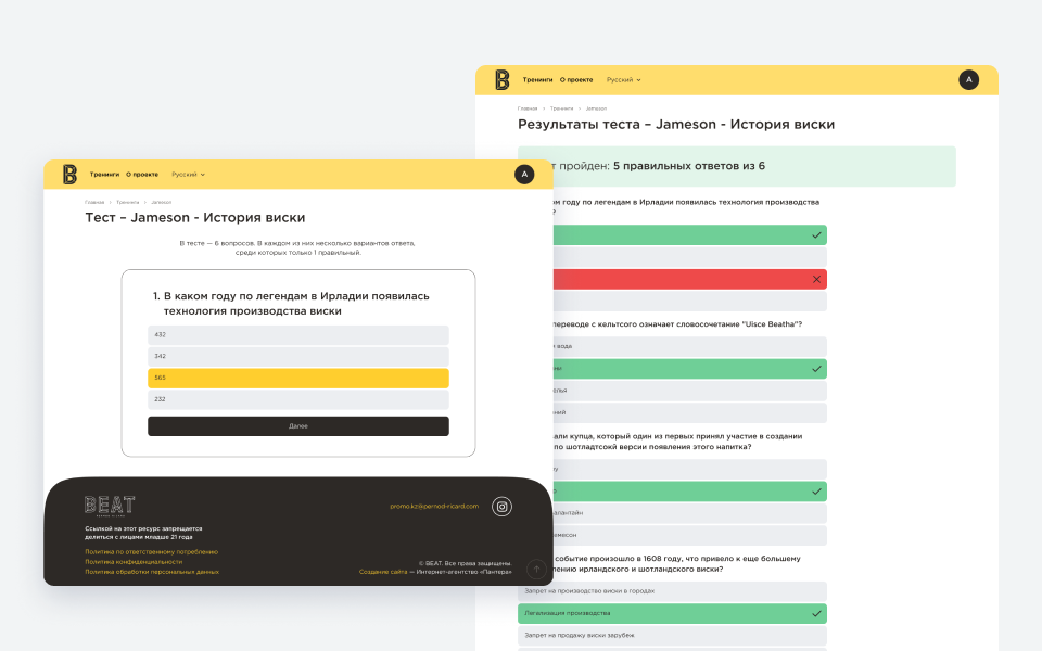 Разработать образовательную платформу для Pernod Ricard Kazakhstan, объединяющую знания по брендам в единую цифровую систему с понятной логикой обучения и оценкой результатов. Продукт должен повышать уровень экспертизы, превращая обучение в управляемый и измеримый процесс.